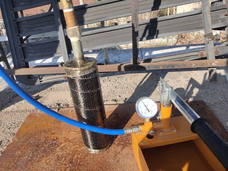 美國(guó)天然氣研究協(xié)會(huì)(Gas Research Institute)的研究表明,纖維復(fù)合材料對(duì)壓力管道的修復(fù)效果取決于復(fù)合材料的抗拉強(qiáng)度和彈性模量。碳纖維材料具有優(yōu)異的化學(xué)性能,其抗拉強(qiáng)度超過3500MPa,遠(yuǎn)遠(yuǎn)大于鋼材的抗拉強(qiáng)度。碳纖維復(fù)合材料的彈性模量與鋼材的彈性模量(207×103MPa)幾乎完全相同,補(bǔ)強(qiáng)層與鋼管具有非常好的變形協(xié)同性。補(bǔ)強(qiáng)層能夠替代管道缺陷承擔(dān)的管道內(nèi)壓