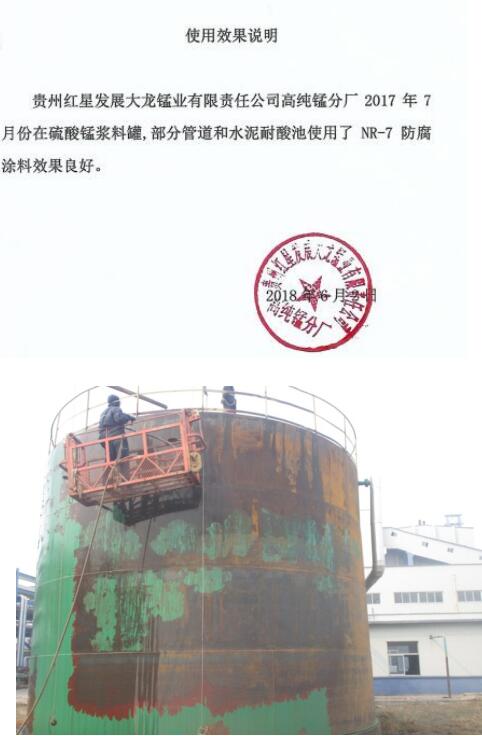 NR-7GJ 可為化工廠各類如酸、堿、鹽及有機物質(zhì)罐體內(nèi)外壁防腐,耐濃硫酸、鹽城、氫氟酸,氯離子等腐蝕,工序簡單,易于涂裝,代替三油五布等工藝。涂層干后無毒無味,為業(yè)務(wù)和運營商提供桌越的腐蝕保護(hù)和長維修間隔,全年均可施工,溫度可低至-25℃,適合耐高溫重防腐環(huán)境區(qū)域。
